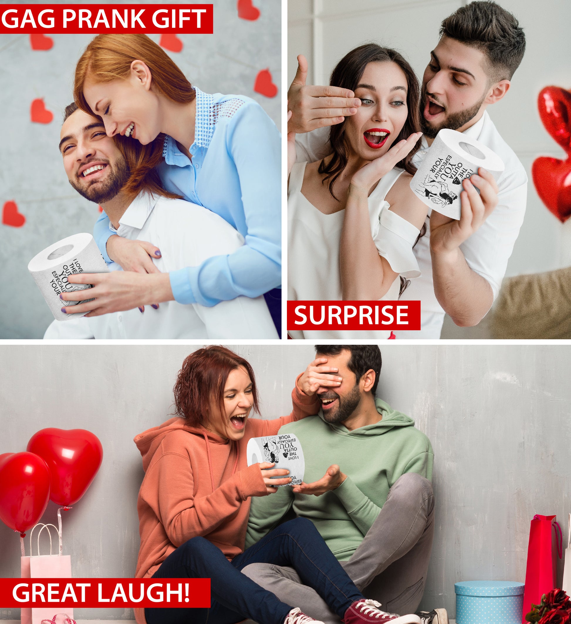- THE NOVELTY TOILET PAPER IS FOR THOSE WHO LOVE PRANKS - The I Love the Poop Out Of You Especially Your Butt funny prank printed toilet paper is a funny joke toilet paper for prankster to gift coworkers, partners, friends! Give away as funny adult gag gifts, party prize, or office gift. Fun toilet prank for laughs so guests, friends or coworkers will have a "roll" while in your bathroom. Perfect present for white elephant or secret gift exchange.