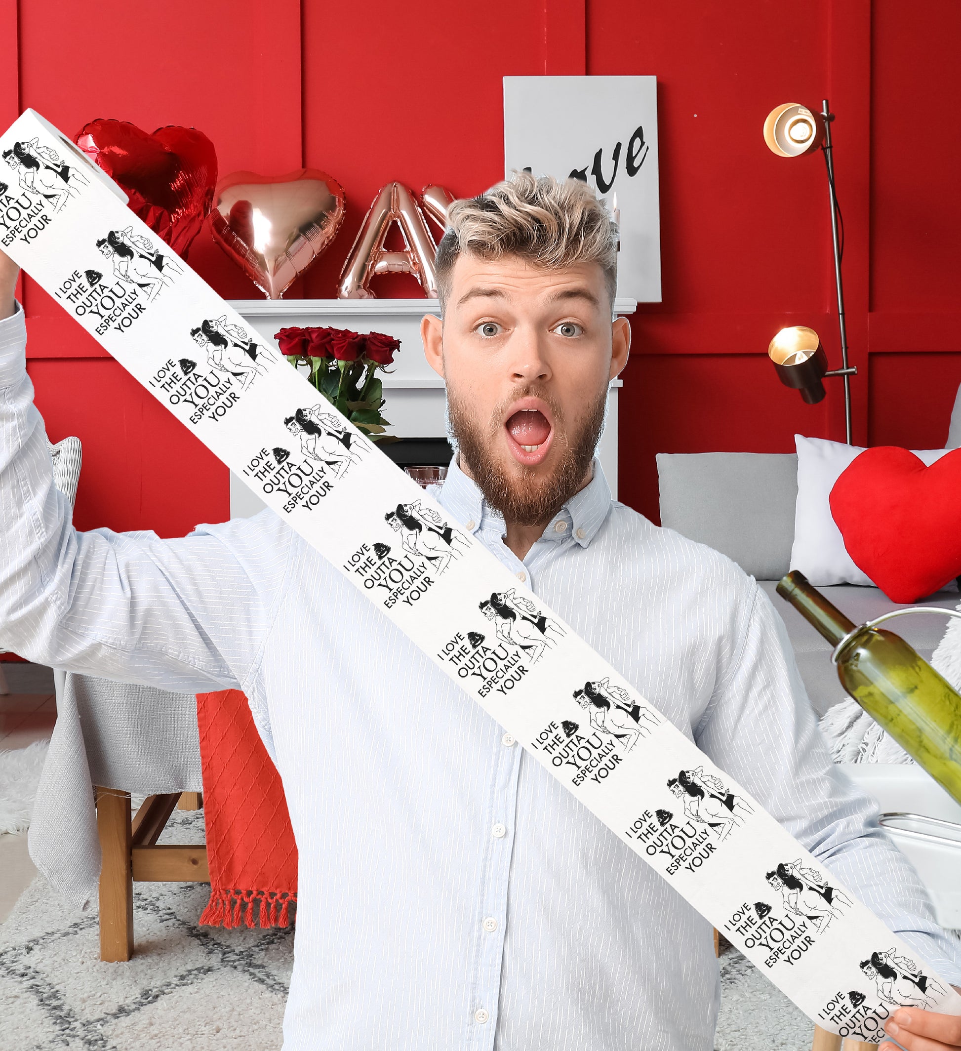 - IDEAL USE FOR THE LOVE YOUR BUTT PRINTED TOILET PAPER - Everyone will be delighted with the I Love the Poop Out Of You Especially Your Butt toilet paper! Give birthday gag gifts for her or him on special days. Great quality printed novelty toilet paper for those who love funny office decorations. No need for wrapping! It is packaged in a colorful gift box. Beats the poop out of a Birthday card! Great to start a fun and friendly prank war!