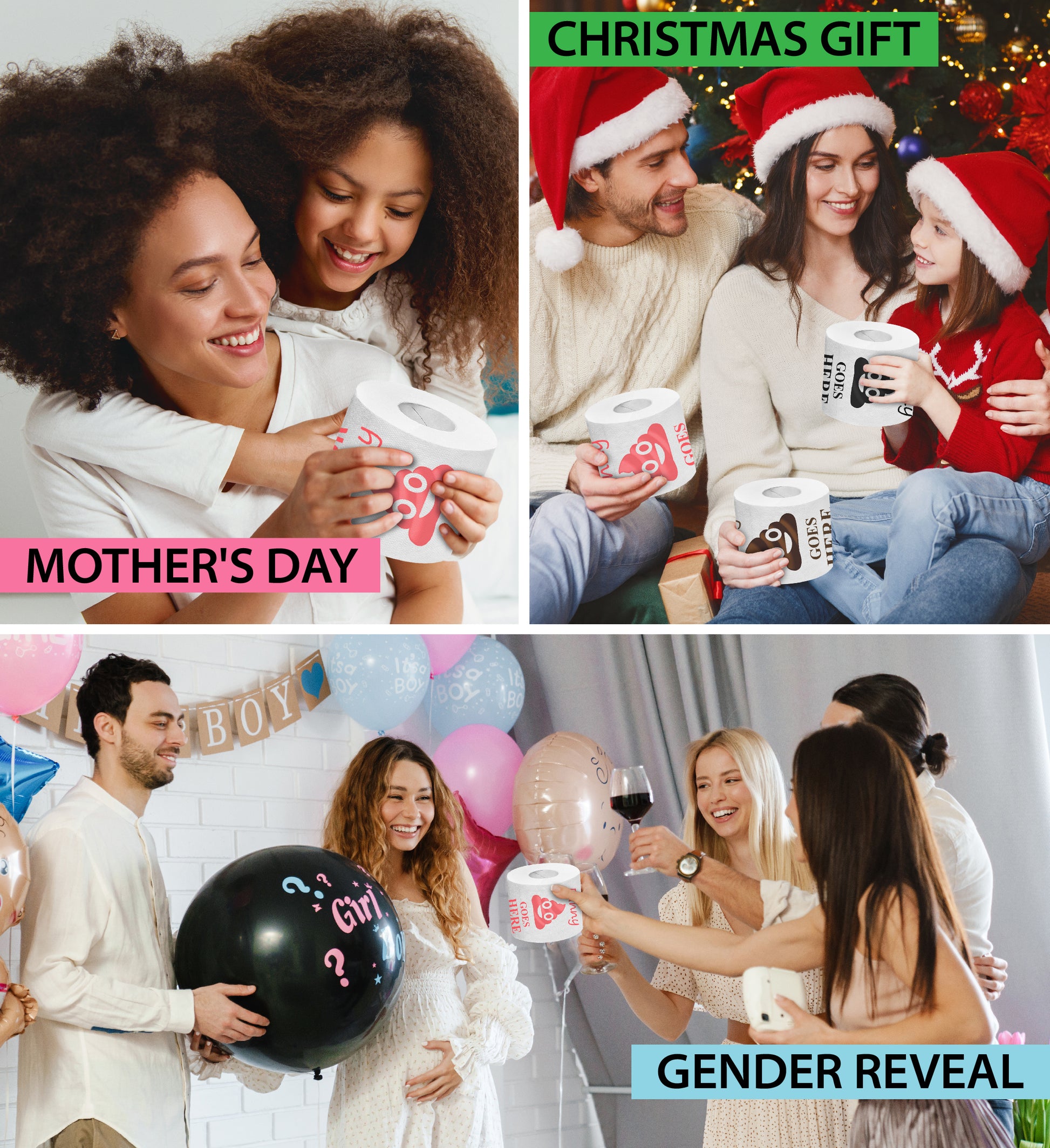 IDEAL USE FOR THE PERSONALIZED CUSTOM PRINTED TOILET PAPER – Print a friend or family members face, or a funny saying, or add your name to customize your own bathroom or powder room! Everyone will be delighted with the custom toilet paper! Not just a surprise gag gift, you can use use it as birthday gift, anniversary, Valentines day, gender reveal, graduation, party decor, Christmas gift, father's day, mother's day, and any special occasion.